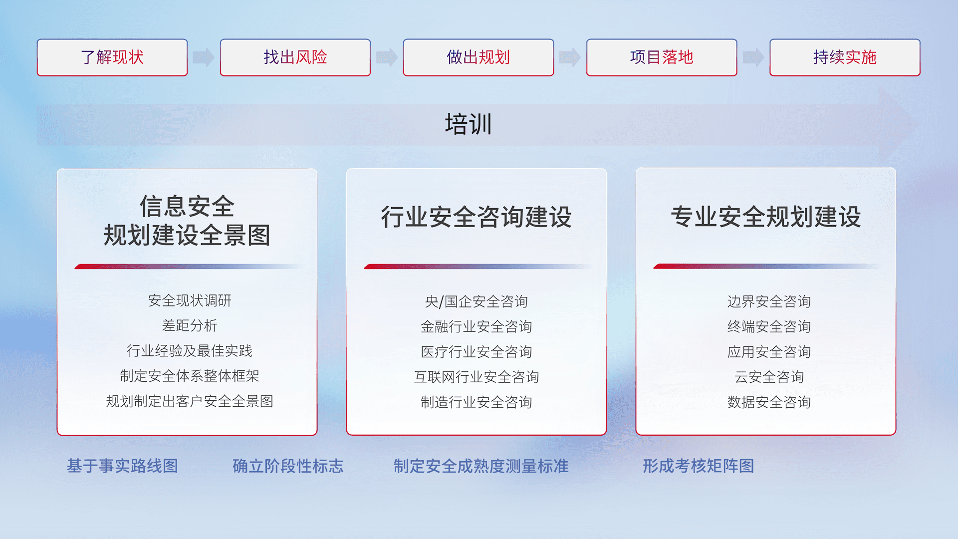 针对客户行业特性,,将宏观的安全战略和需求,,,通过专业的交付服务,,,实现项目落地,,为客户提供标准规范的集成交付服务。。。